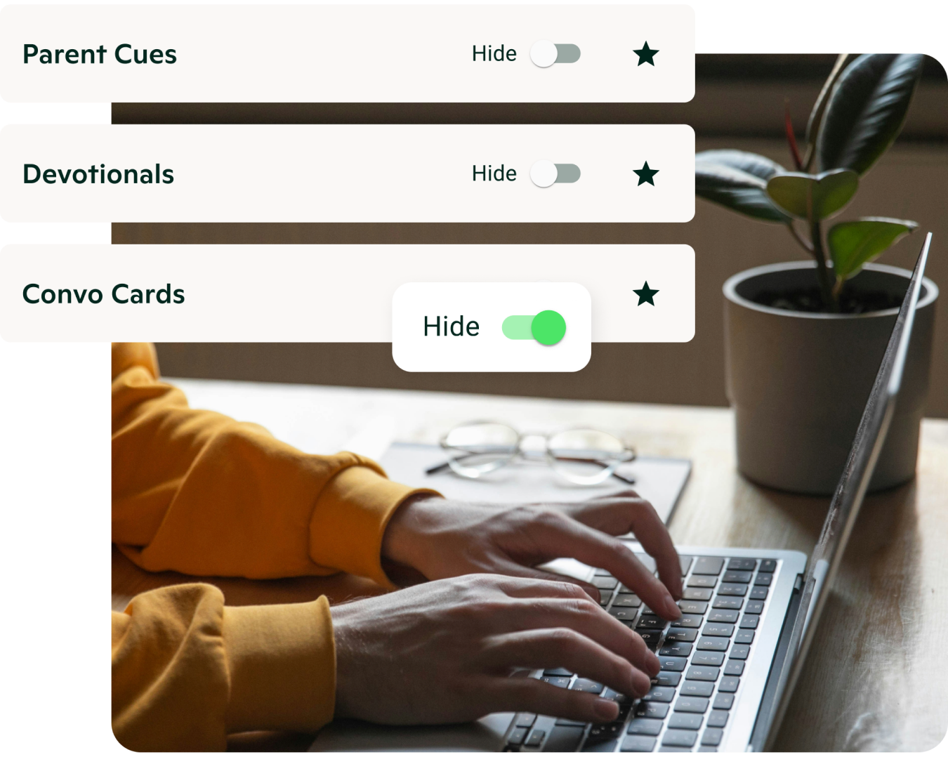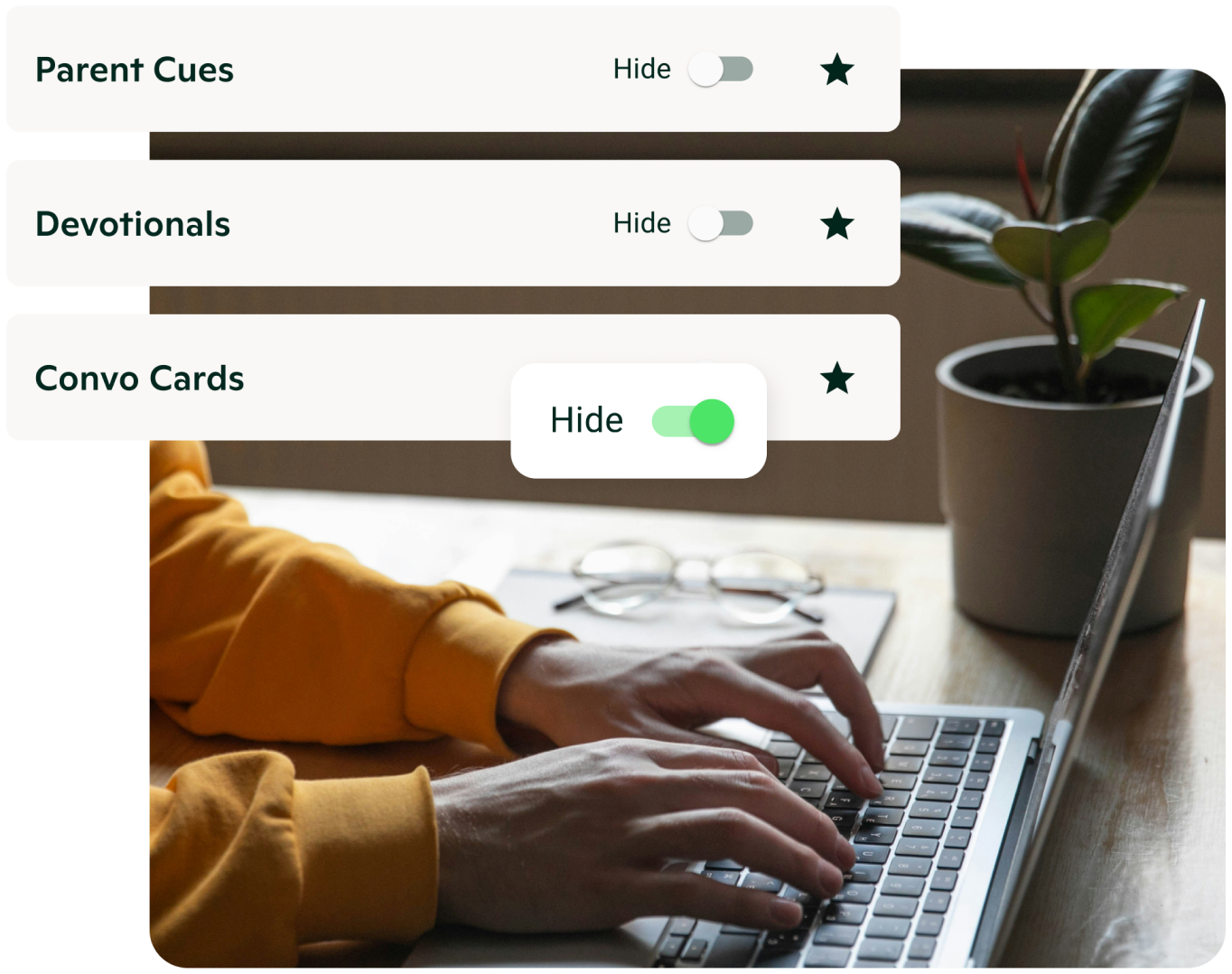 Easy to use and time saving—leaders can toggle, tailor, and preview this weeks curriculum content in Parent+. As you build your service plan, Parent+ builds the parent view.