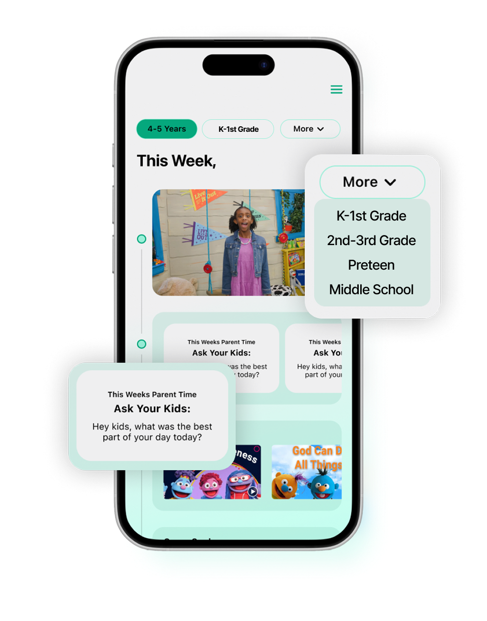 Empower your teams to equip parents with media, devotionals, Bible stories, and conversation cues every week. White labeled so they see you, not us.