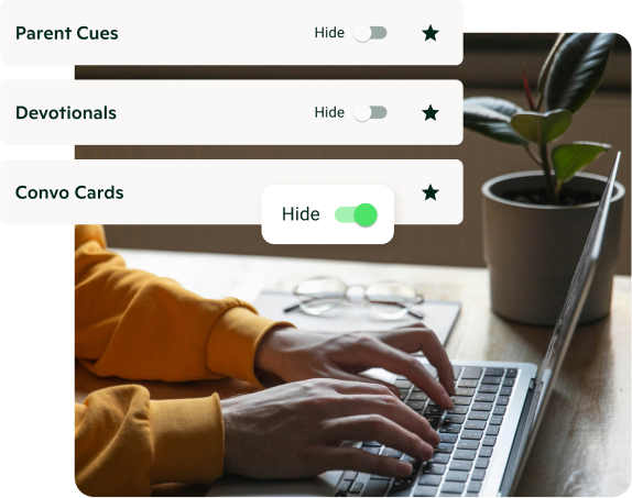 Easy to use and time saving—leaders can toggle, tailor, and preview this weeks curriculum content in Parent+. As you build your service plan, Parent+ builds the parent view.