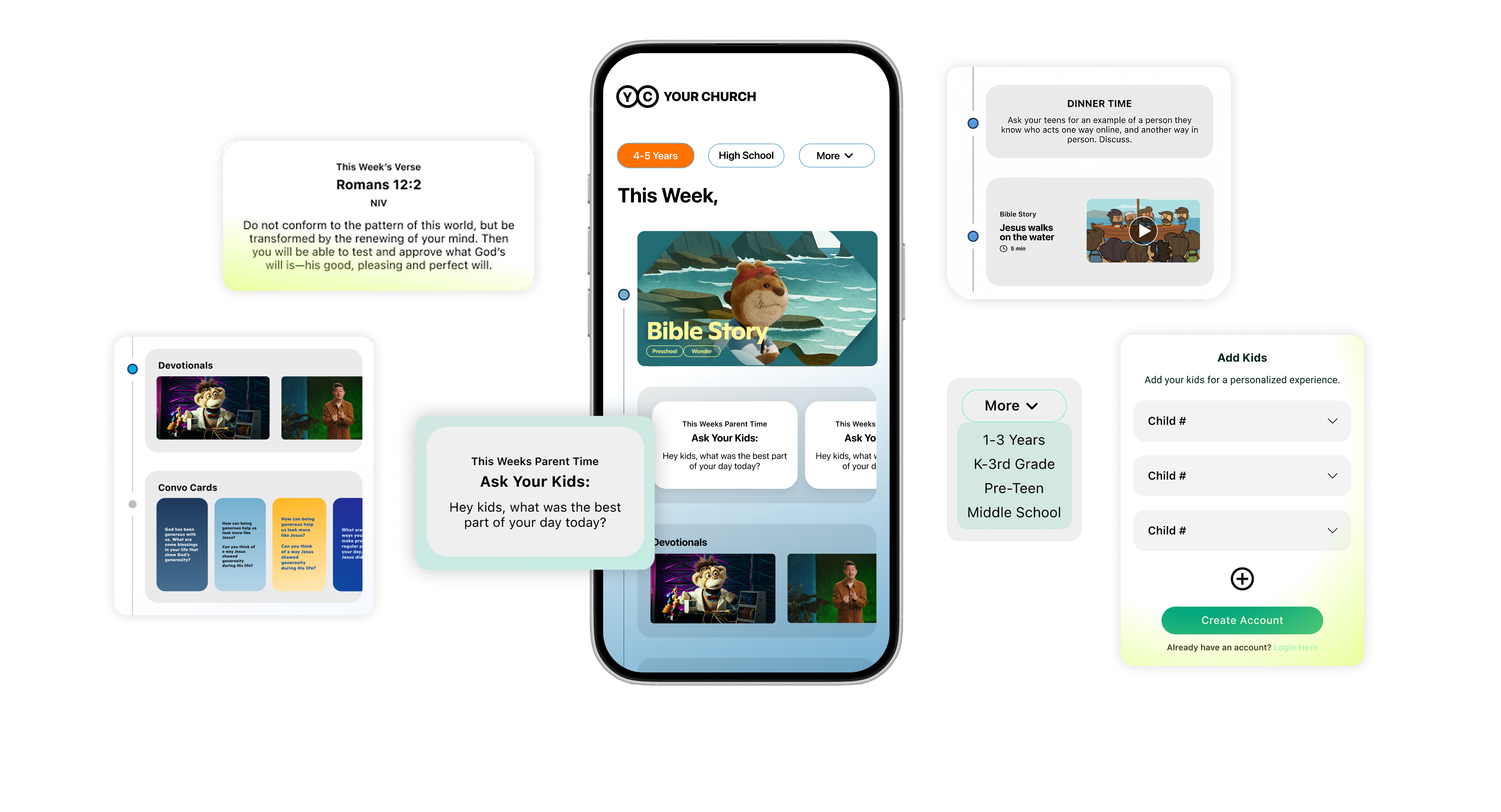 Parent+ is white-labeled so families experience your brand—not a vendor’s. Connect throughout the community and build a bridge back to the church body.
